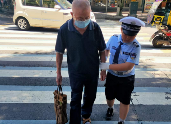 学习完理论知识,在社区工作人员和志愿者的带领下,孩子们不畏酷暑来到小十字路口开展交通文明劝导,标准的站姿、文明的劝导方式引发了大量市民围观、拍照。
