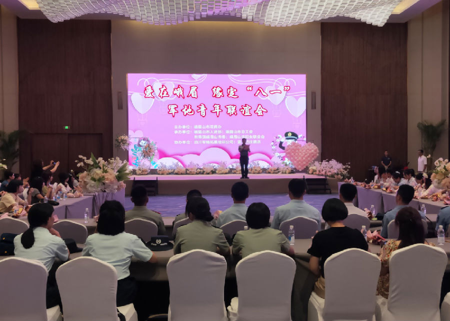 7月26日,由峨眉山市双拥办、市人武部、市总工会、市妇联、团市委共同主办的“爱在峨眉,缘定八一”军地青年联谊活动在蓝光己庄酒店举行。市人武部部长及市政府副市长出席活动并讲话。