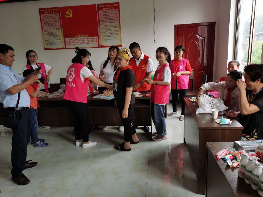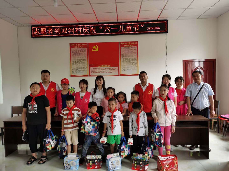 近日,由个体工商户、在校大学生、在职教师等几位党员志愿者及巾帼志愿者一行带上家人及慰问物资,到犍为县玉屏镇双河村与贫困儿童一起共庆“六一”。